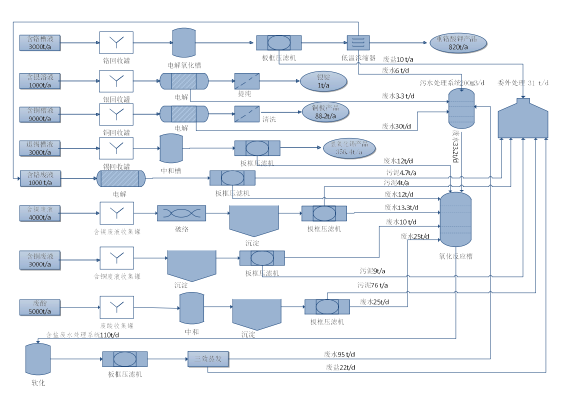 公司投資建設(shè)的危廢處置、利用設(shè)備,已通過市、區(qū)環(huán)保行政主管部門驗(yàn)收,并頒發(fā)《危險(xiǎn)廢物經(jīng)營許可證》,編號(hào):JSWX0206OOD045,核準(zhǔn)經(jīng)營范圍:年處理和利用3萬噸電鍍廢槽液,包括含銅槽液1000噸/年、退錫廢液4000 噸/年、含鉻廢液2000 噸/年、含鎳廢液2000 噸/年、含銅廢液1000 噸/年、廢酸12000噸/年、廢堿 8000 噸/年。項(xiàng)目已于 2021年1月11日取得無錫市惠山區(qū)行政審批局出具的江蘇省投資項(xiàng)目備案證(惠行審備[2021]11 號(hào))。